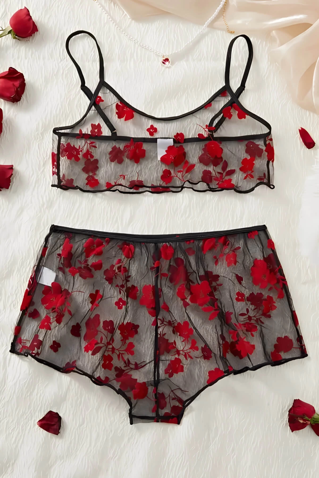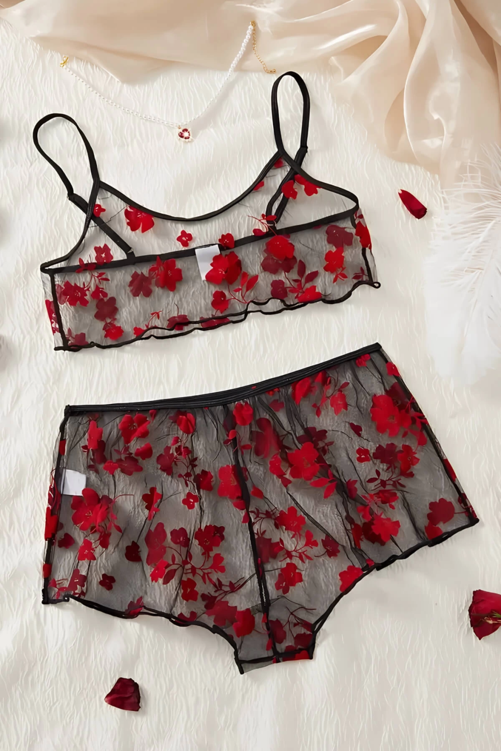 Çiçek Desenli Siyah Transparan Şortlu Gecelik TM1377