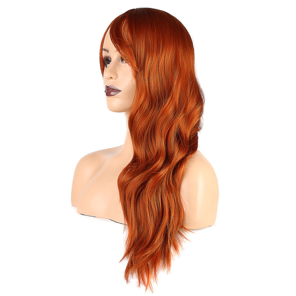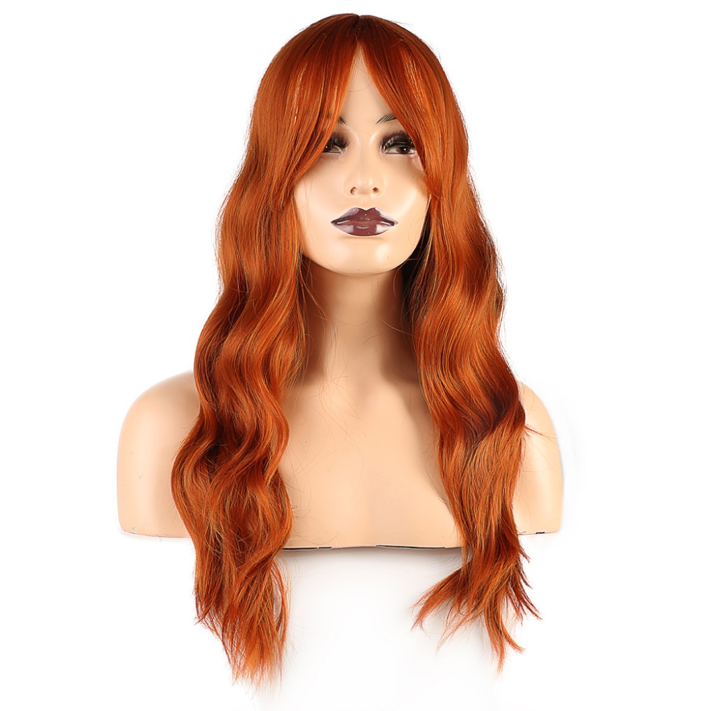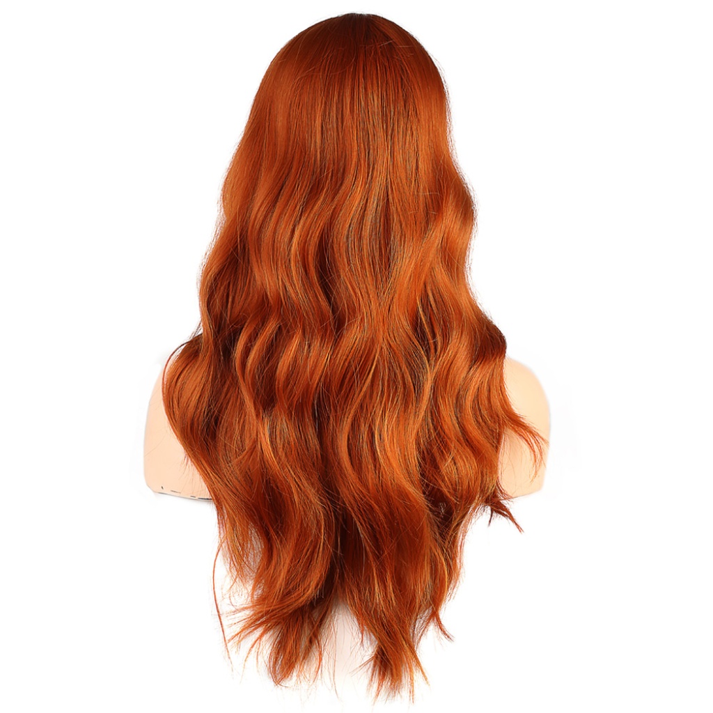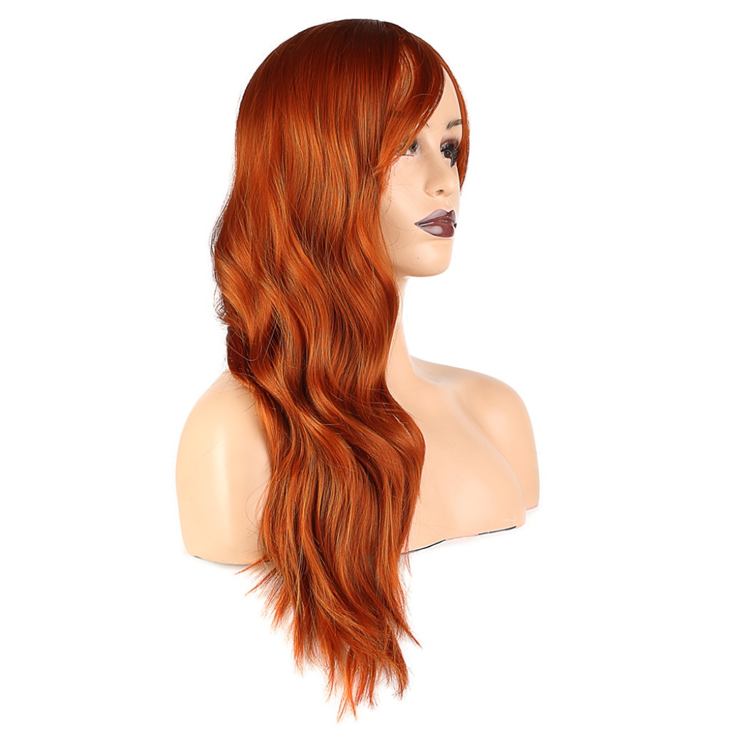 Dalgalı Perçemli Fiber Sentetik Orta Boy Peruk - Bakır