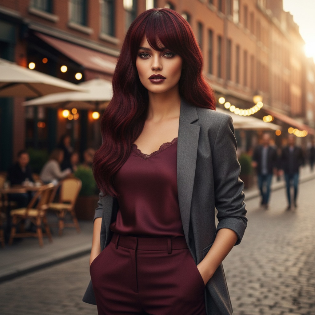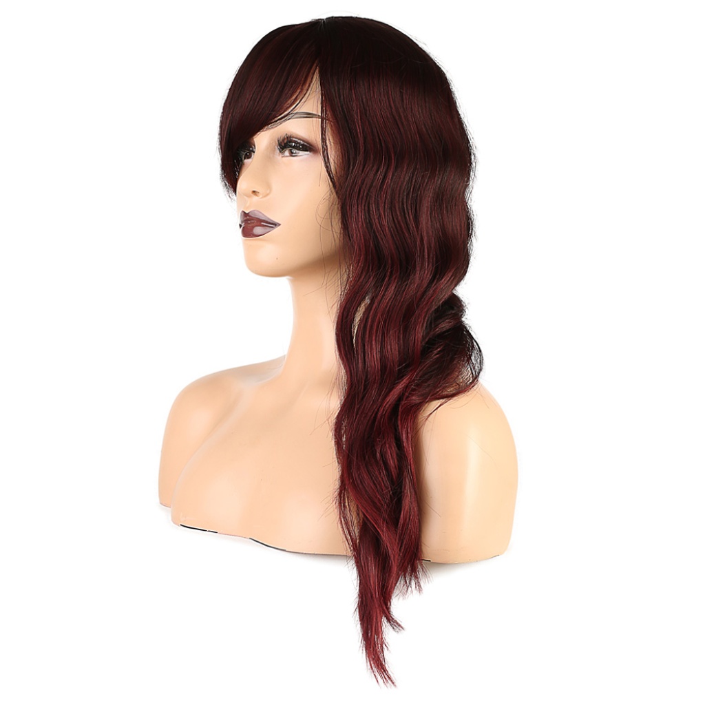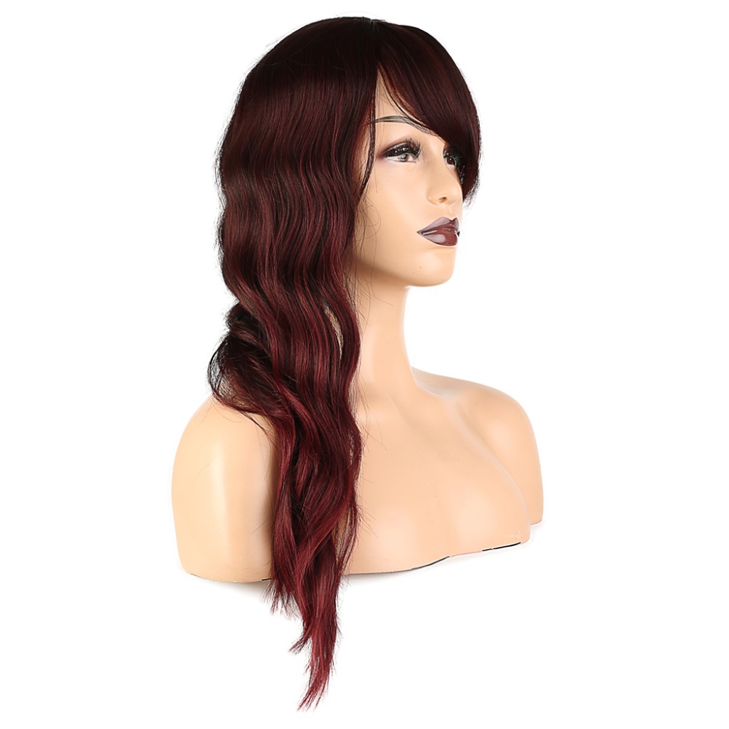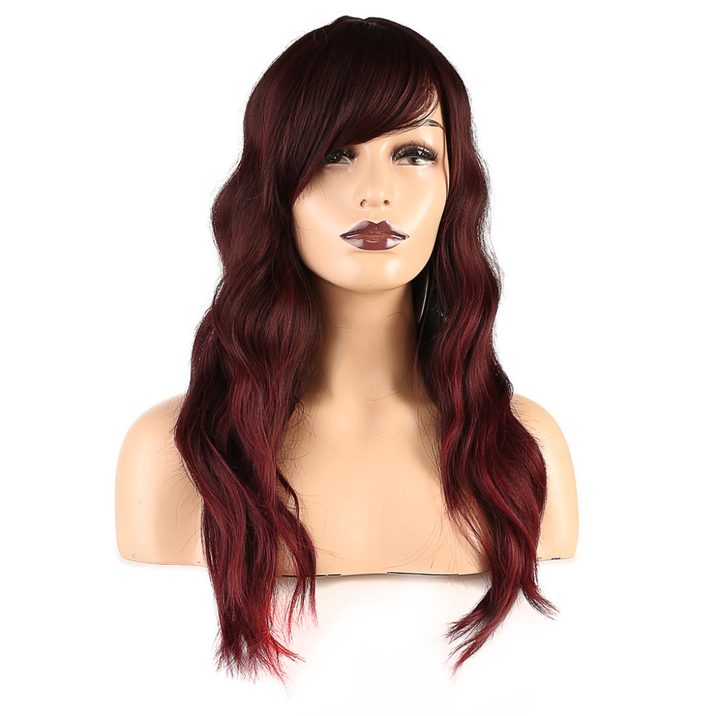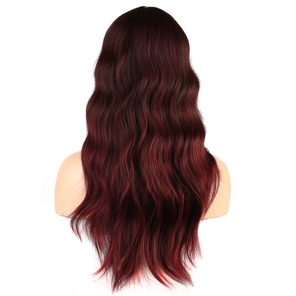 Dalgalı Perçemli Fiber Sentetik Orta Boy Peruk - Kızıl Kahve