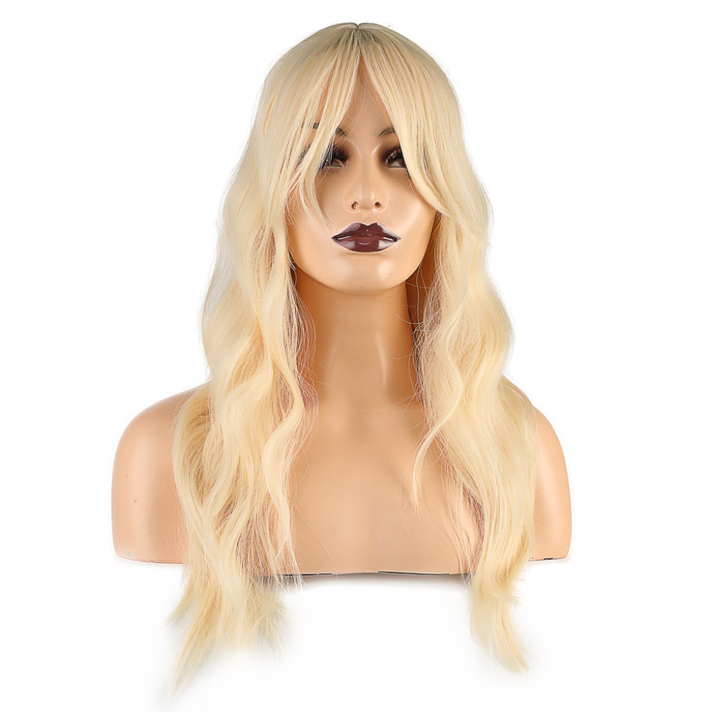 Dalgalı Perçemli Fiber Sentetik Orta Boy Peruk - Platin