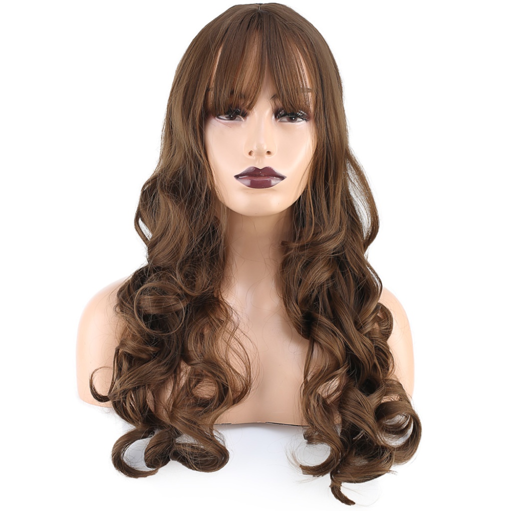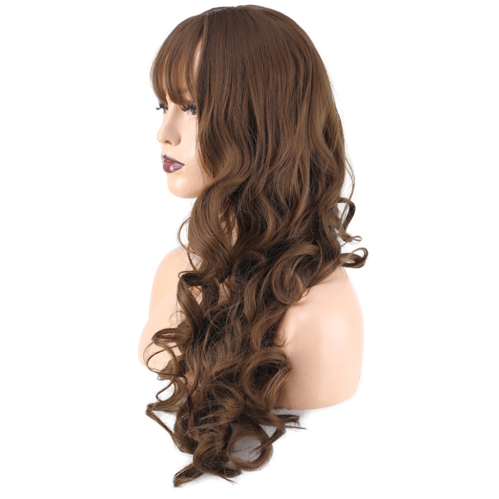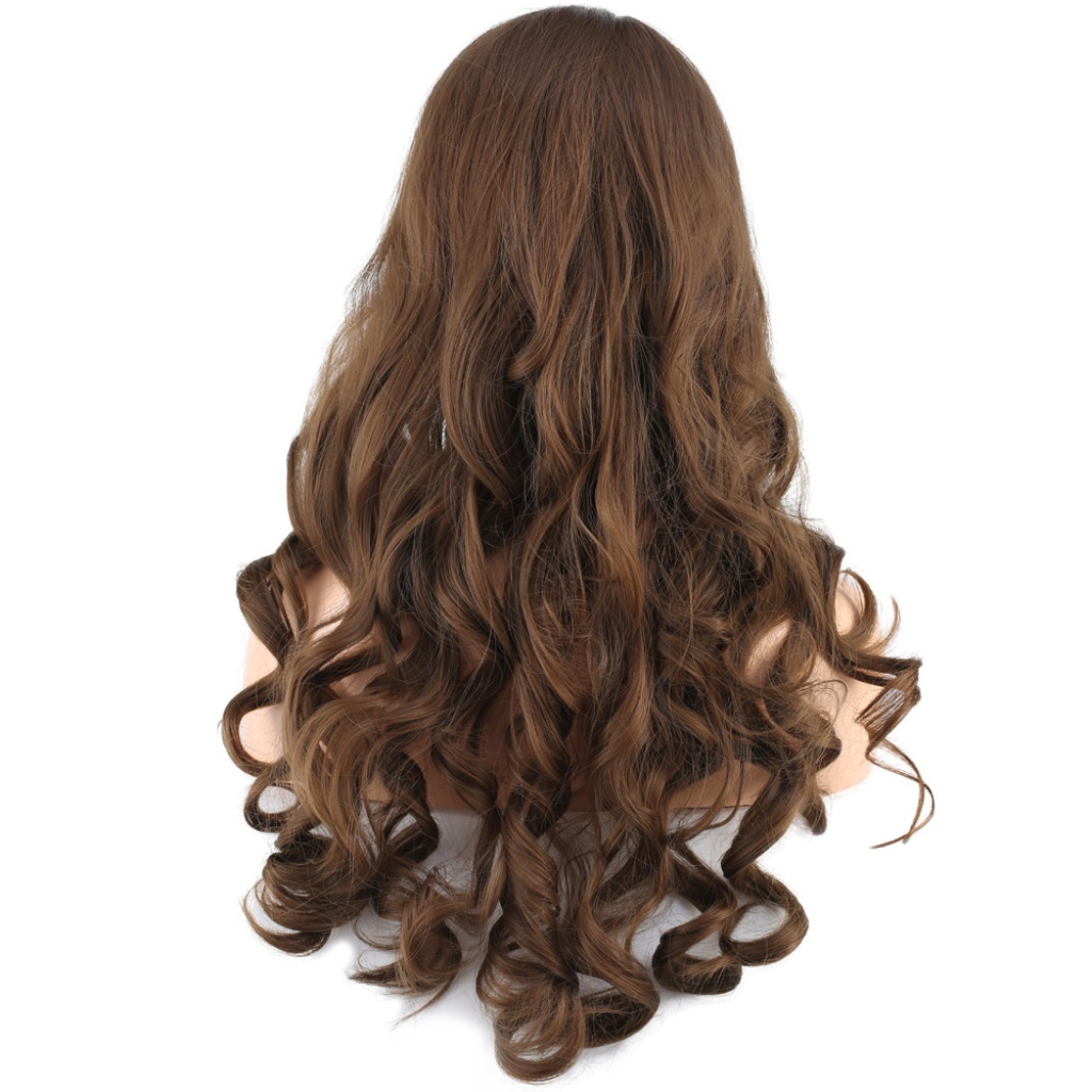 Dalgalı Perçemli Uzun Fiber Sentetik Peruk - Koyu Kumral