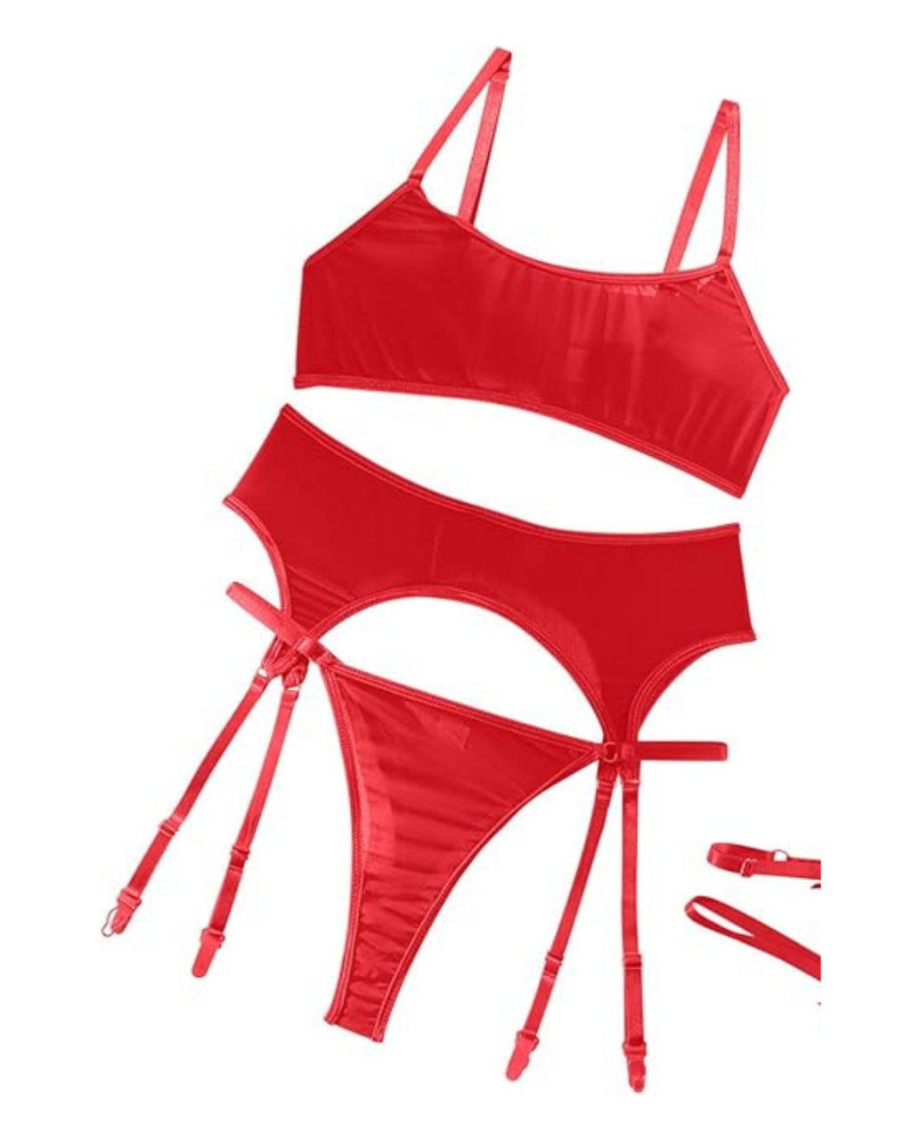 Fantezi Kırmızı Transparan Tül Jartiyer Takımı BC3264