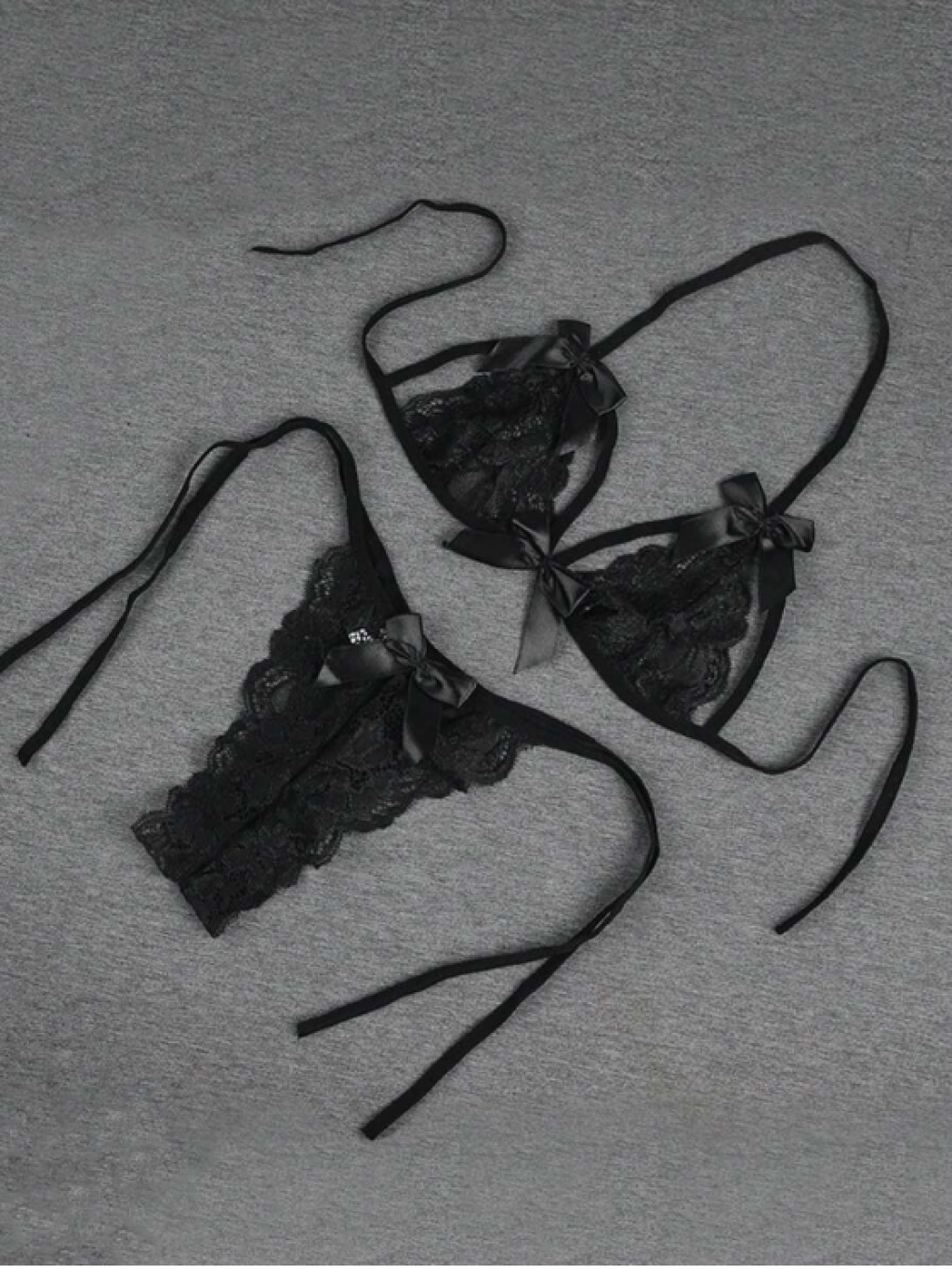 Fantezi Seksi Siyah Fiyonk Süslemeli Dantelli Sütyen String Takımı BC9707