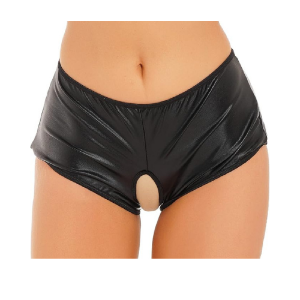Fantezi Siyah Özel Bölgeleri Açık Parlak Külot BC0051