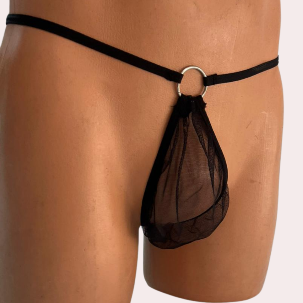 Fantezi Siyah Transparan Halkalı Tül Erkek String Seksi Erkek İç Çamaşırı BC4610
