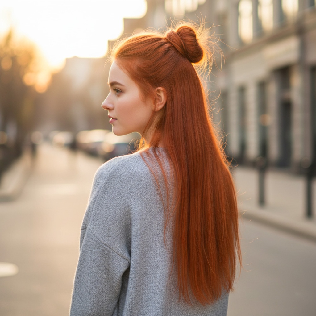 Fiber Sentetik Dalgalı Yarım Ay + 2 Yan Çıt Çıt - Bakır