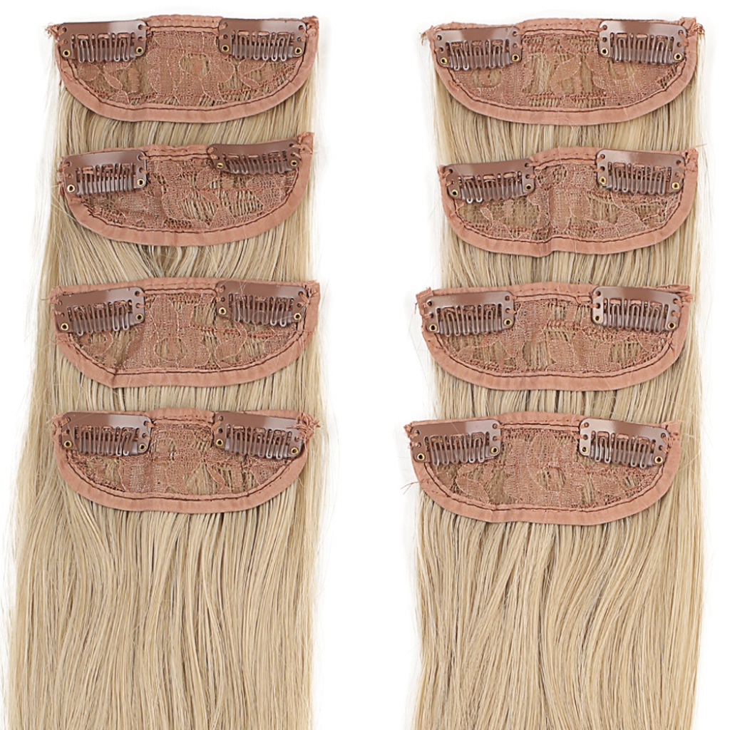 Fiber Sentetik Düz 8 Parça Çıt Çıt - Kumral Beyaz Platin Röfleli