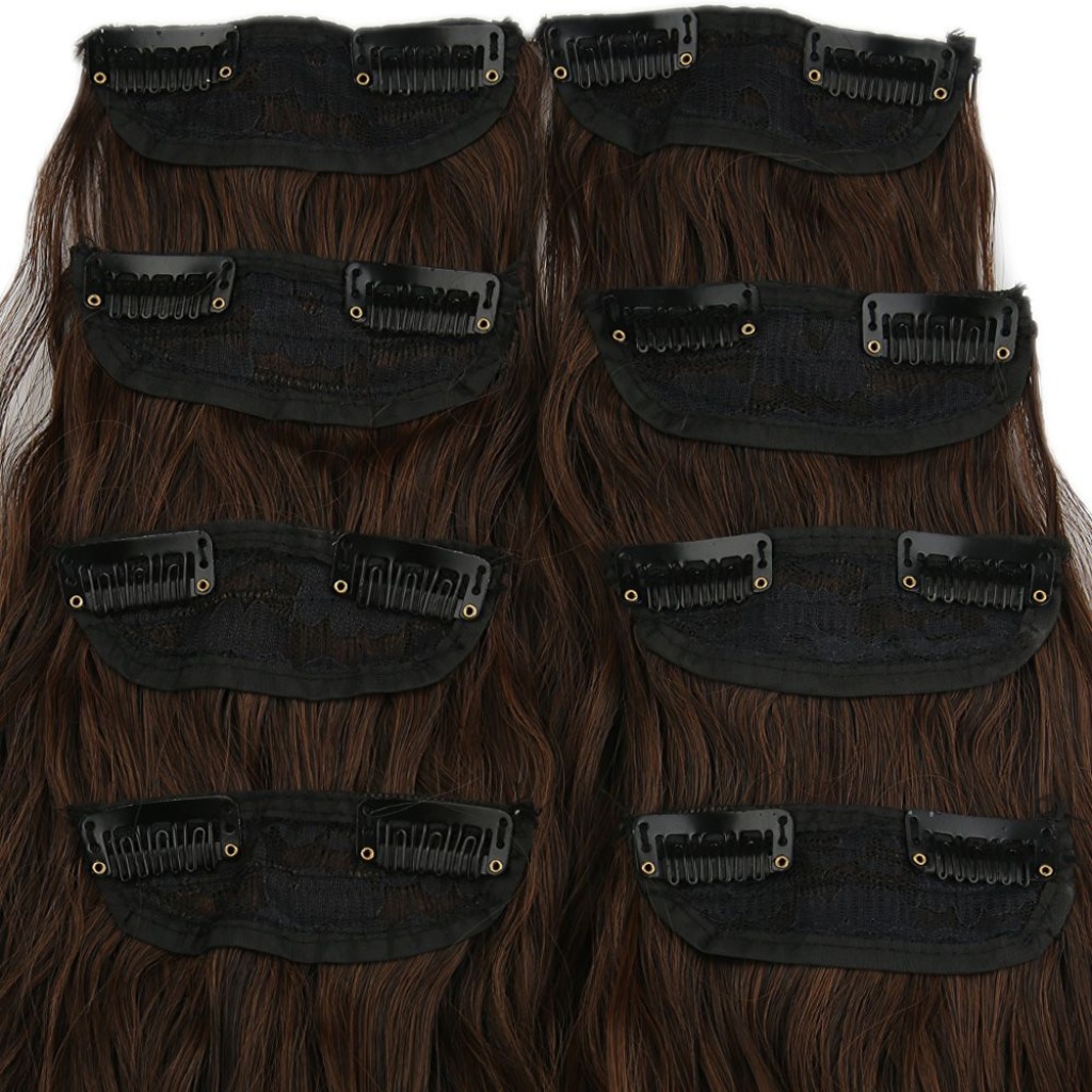 Fiber Sentetik Kabarık Dalgalı 8 Parça Çıt Çıt - Kahve Karamel