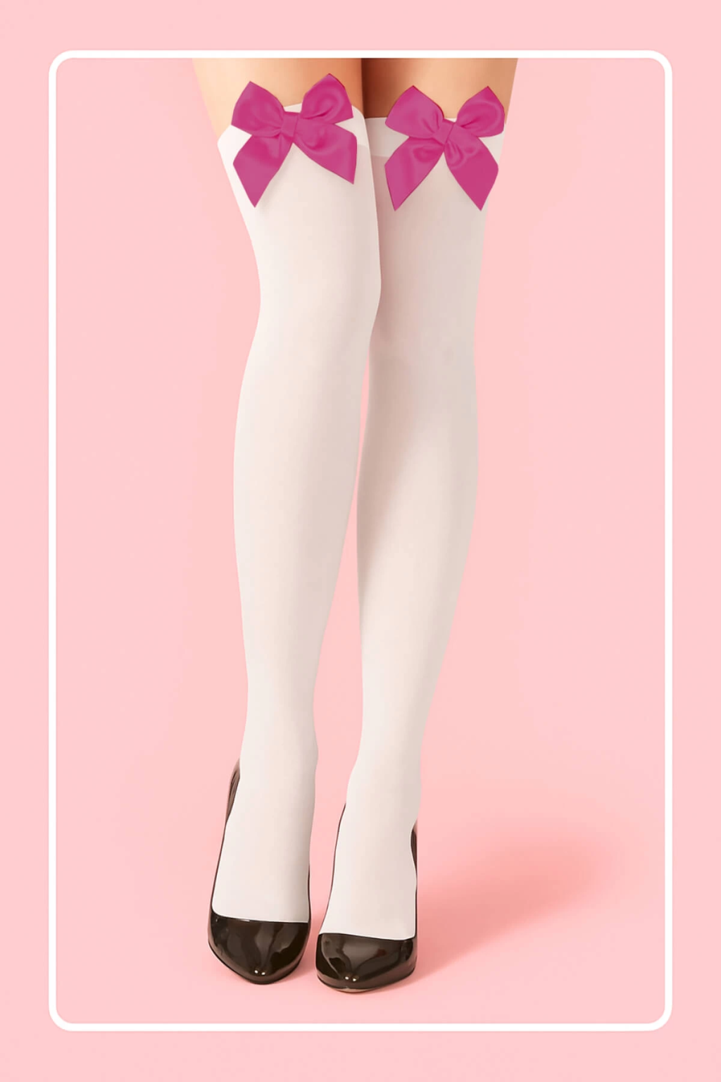 Fuşya Fiyonklu Beyaz Jartiyer Çorabı TM1379