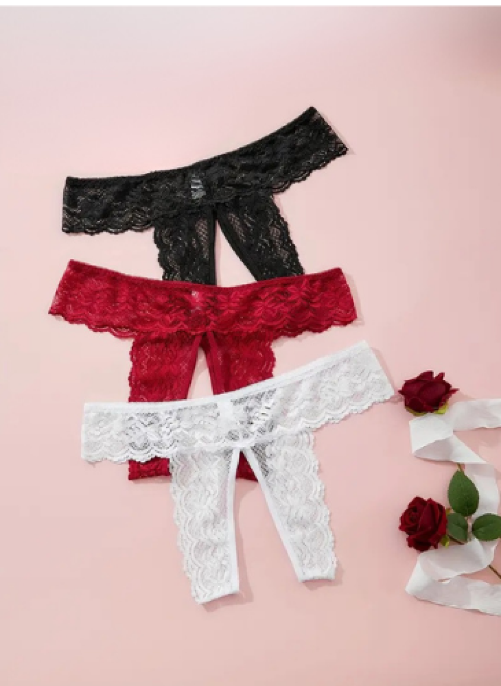 Kadın 3'lü Özel Bölgeleri Açık Dantelli Tanga seti BC0045