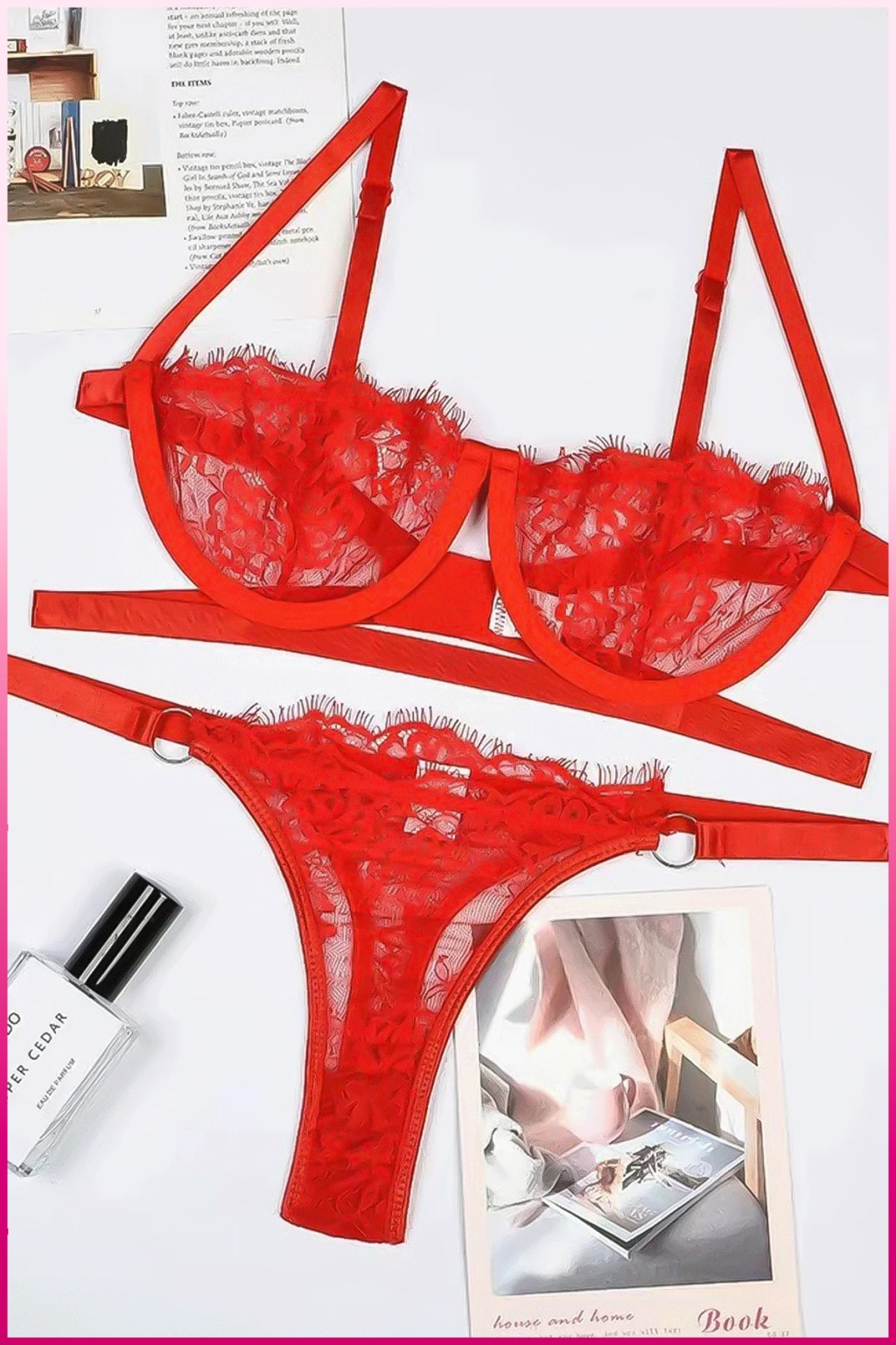 Kadın Kırmızı Dantelli Balenli Sütyen Külot Takım