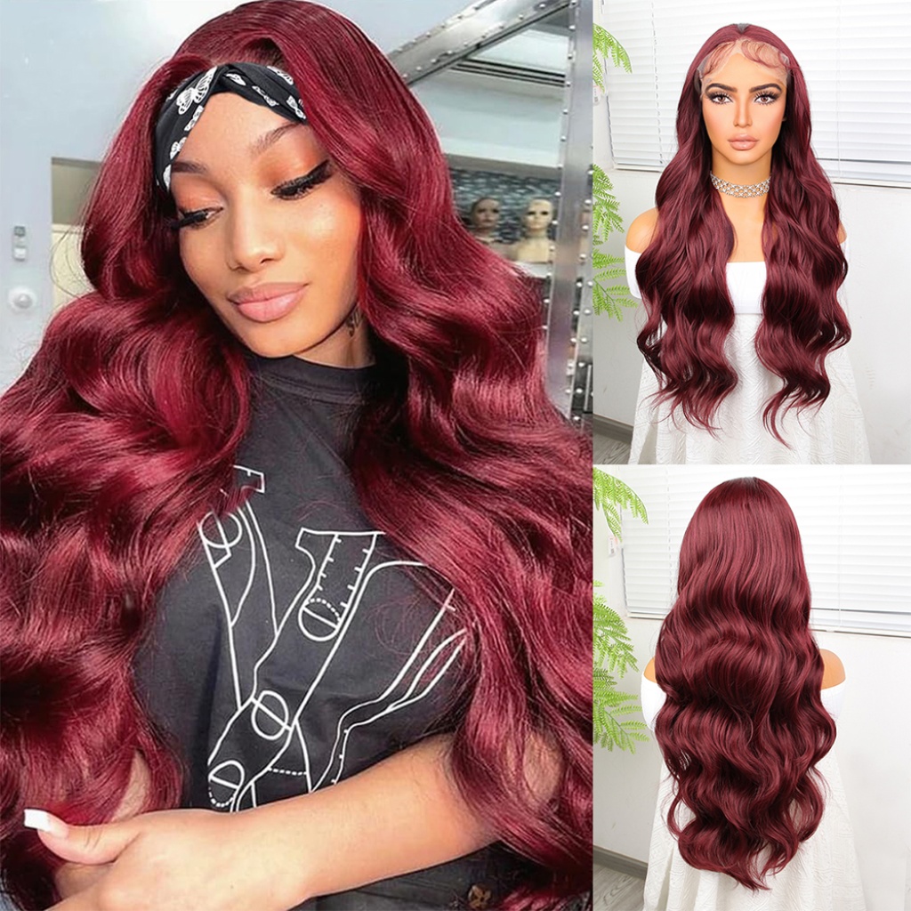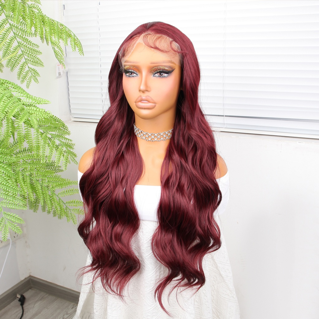 Kızıl Kahve Fiber Sentetik Geniş Dalgalı Tül Peruk