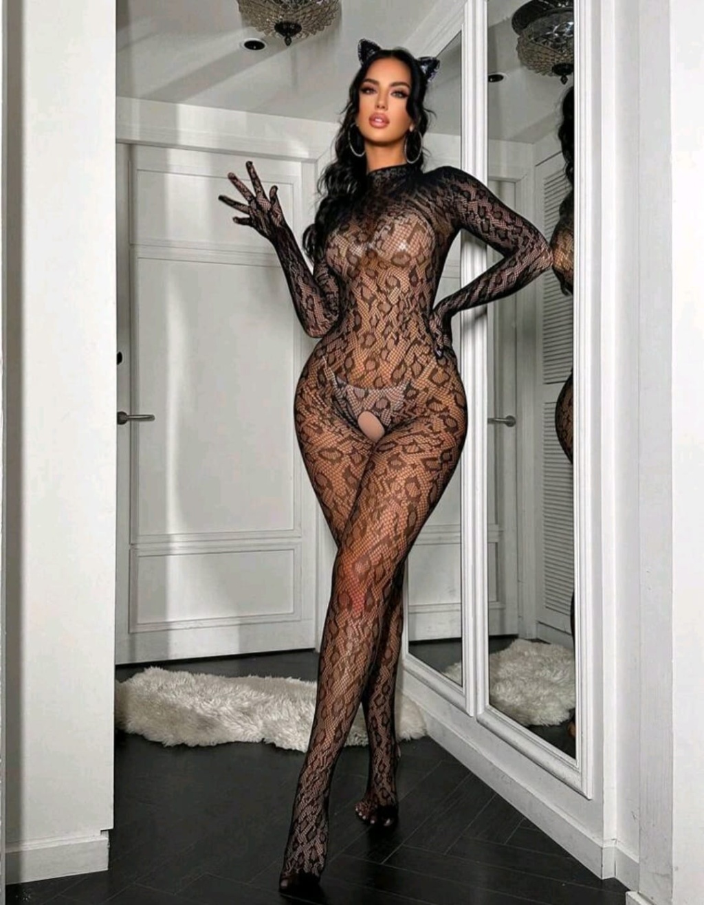 Leopar Desen Vücut Çorabı
