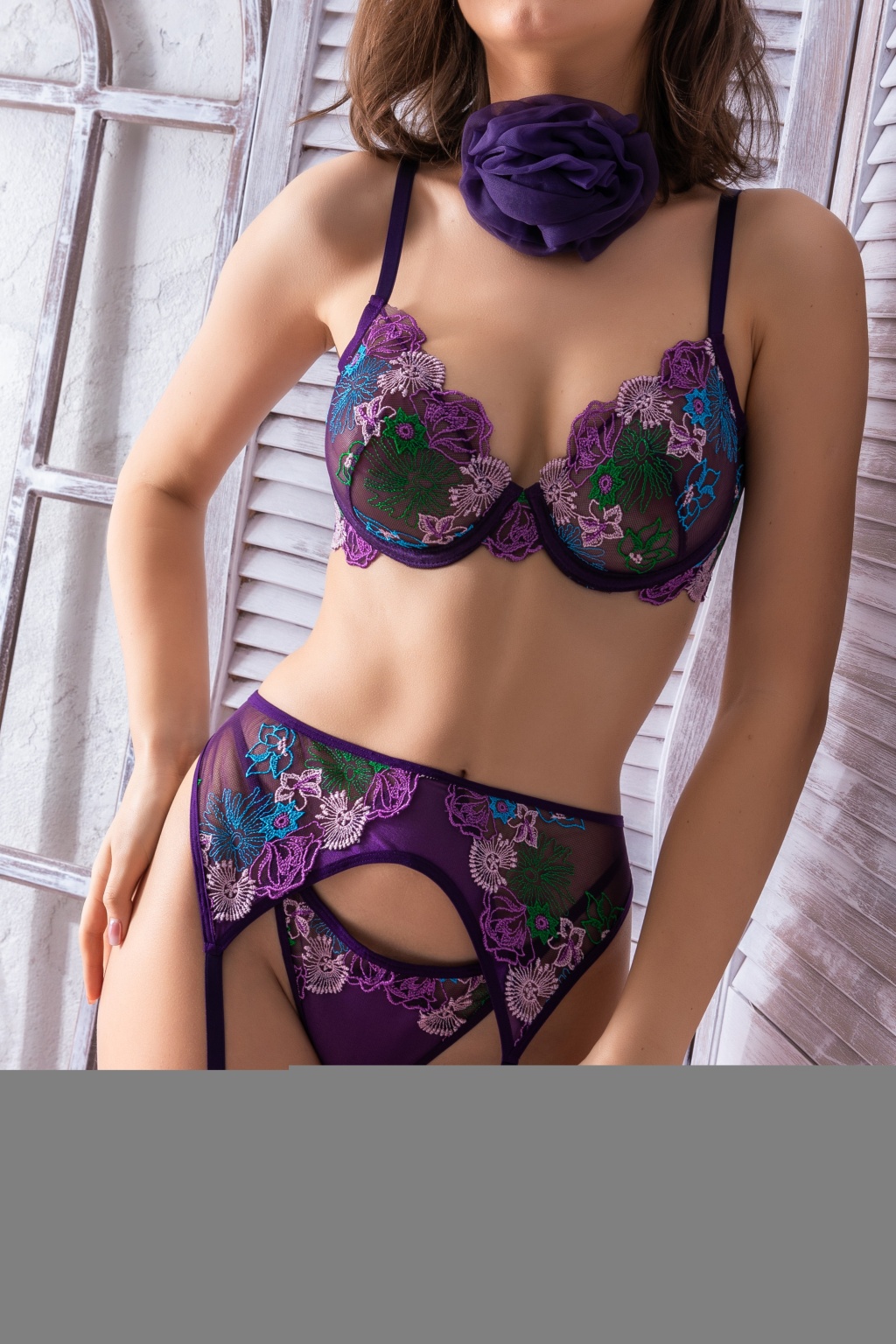 Mor Dantel Jartiyerli 3’lü Fantazi İç Giyim Takımı, Transparan Ayarlanabilir Askılı,Kadın İç Giyim