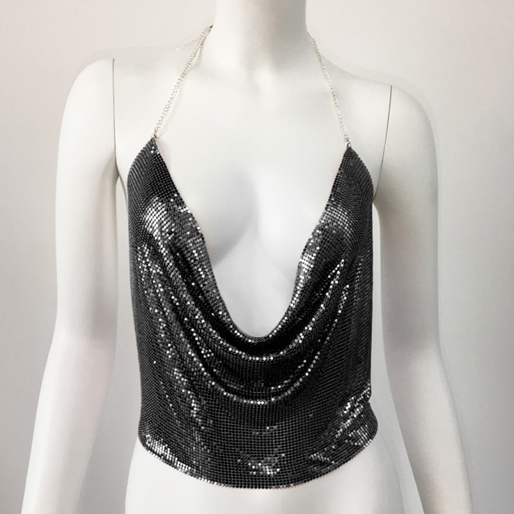 Parlak Siyah Crop & Bluz Kolsuz Kayık Yaka Zırh Büstiyer