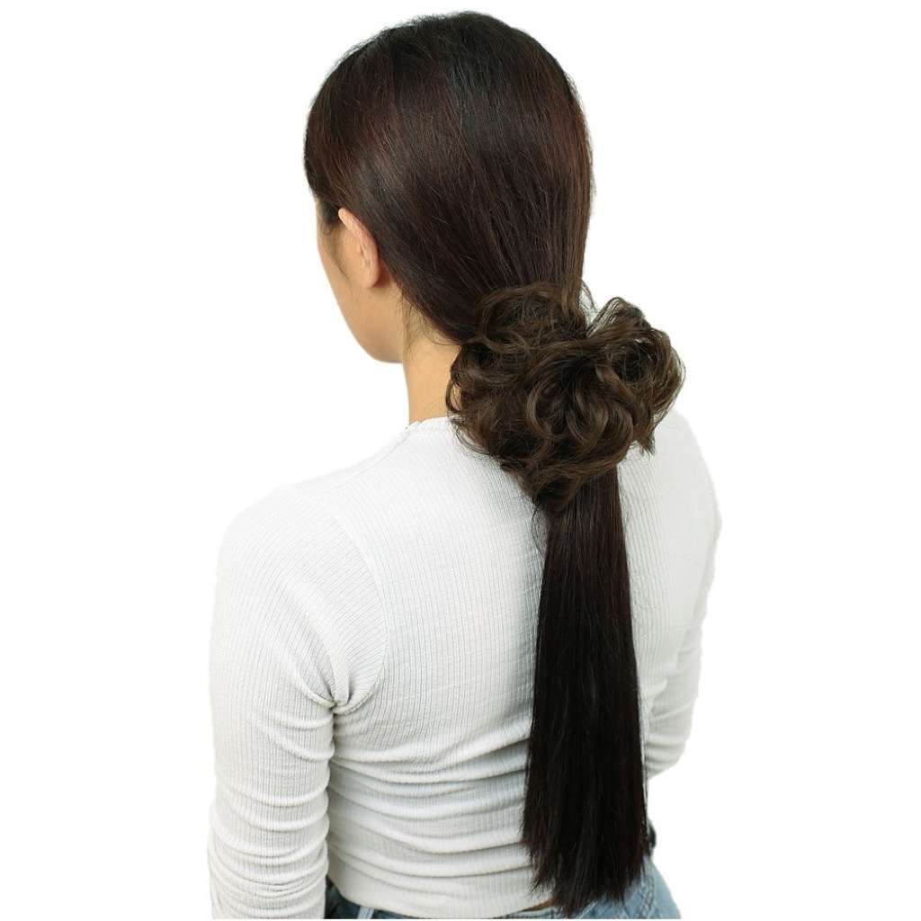 Saçlı Lastikli Topuz Toka - Kumral