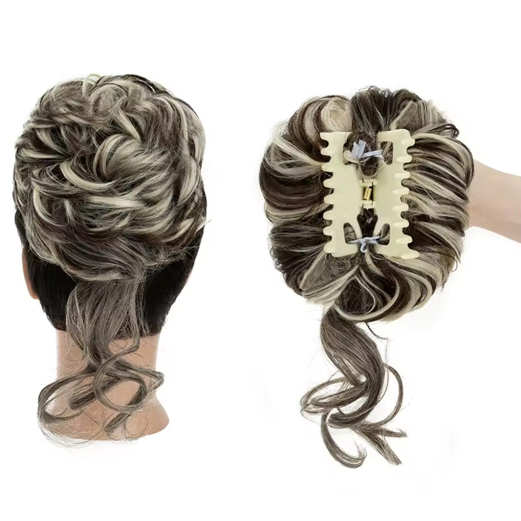 Tokalı Kuyruklu Dağınık Topuz - Koyu Kahve Platin Röfleli