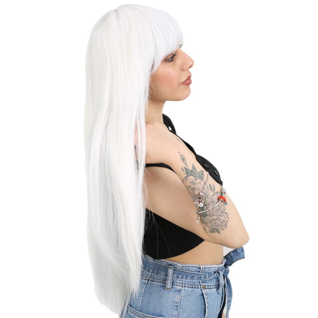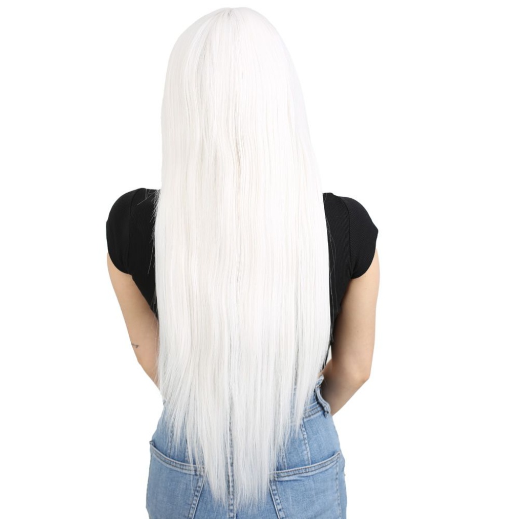 Uzun Kahküllü Fiber Sentetik Peruk - Beyaz