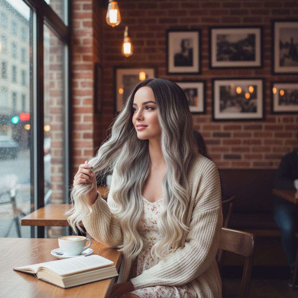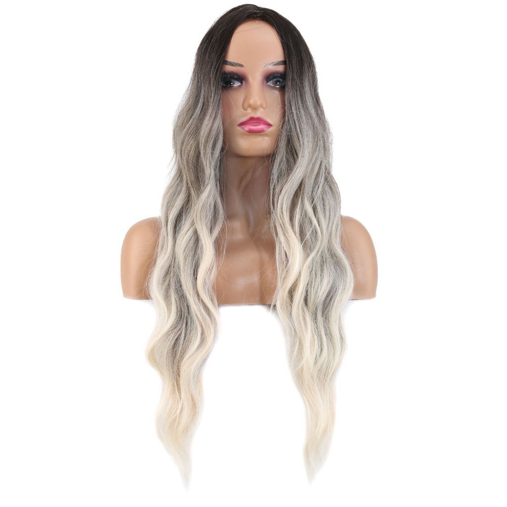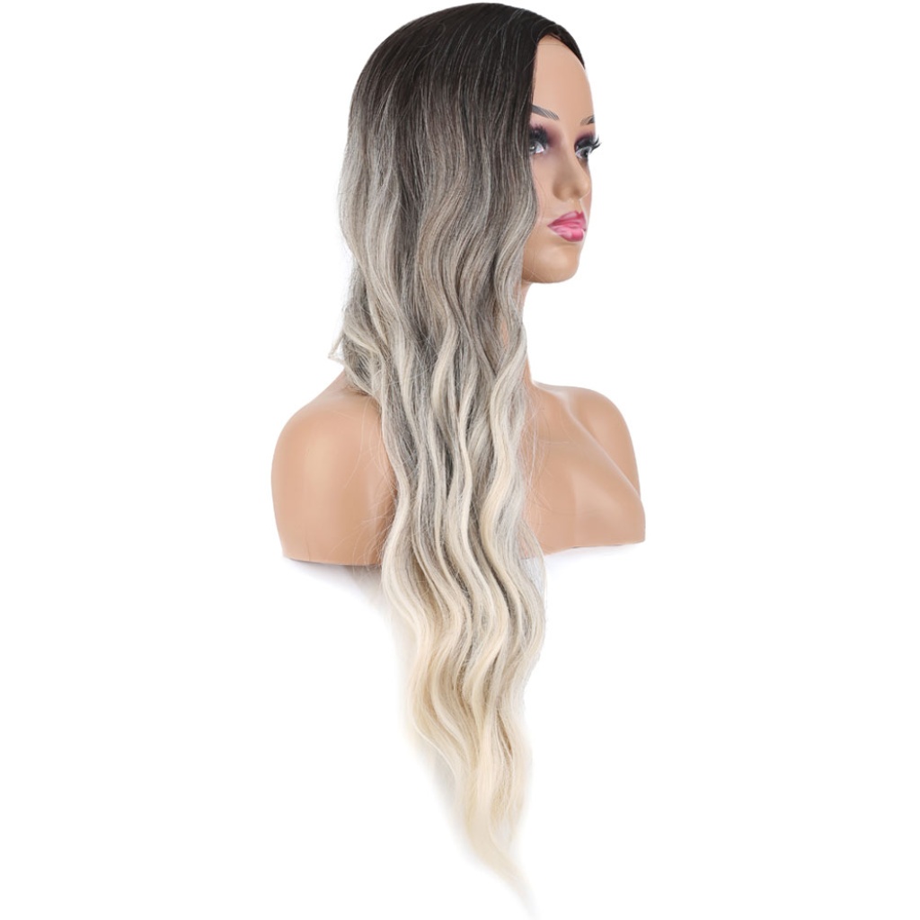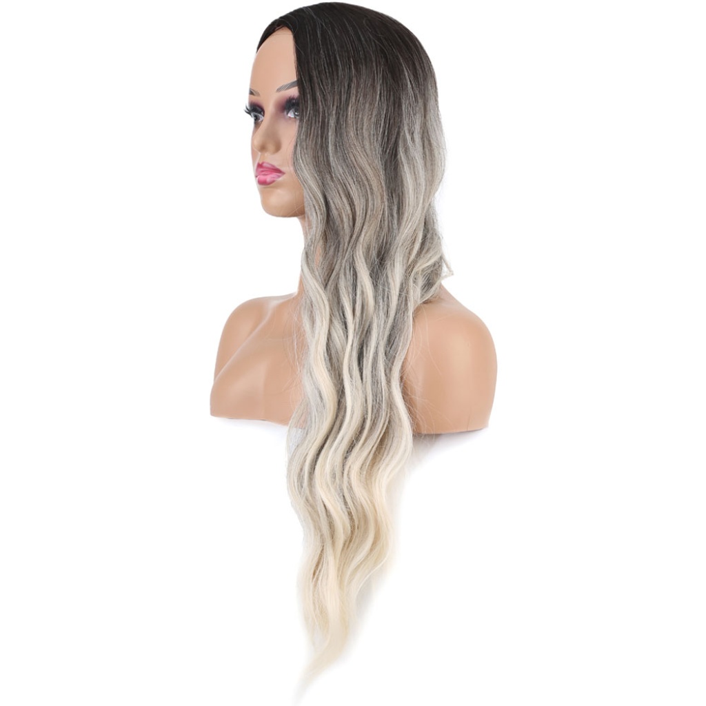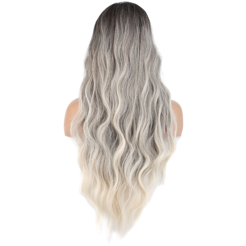 Uzun Su Dalgası Fiber Sentetik Peruk - Küllü Kumral / Beyaz Platin Ombre